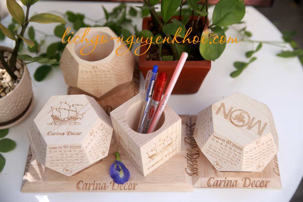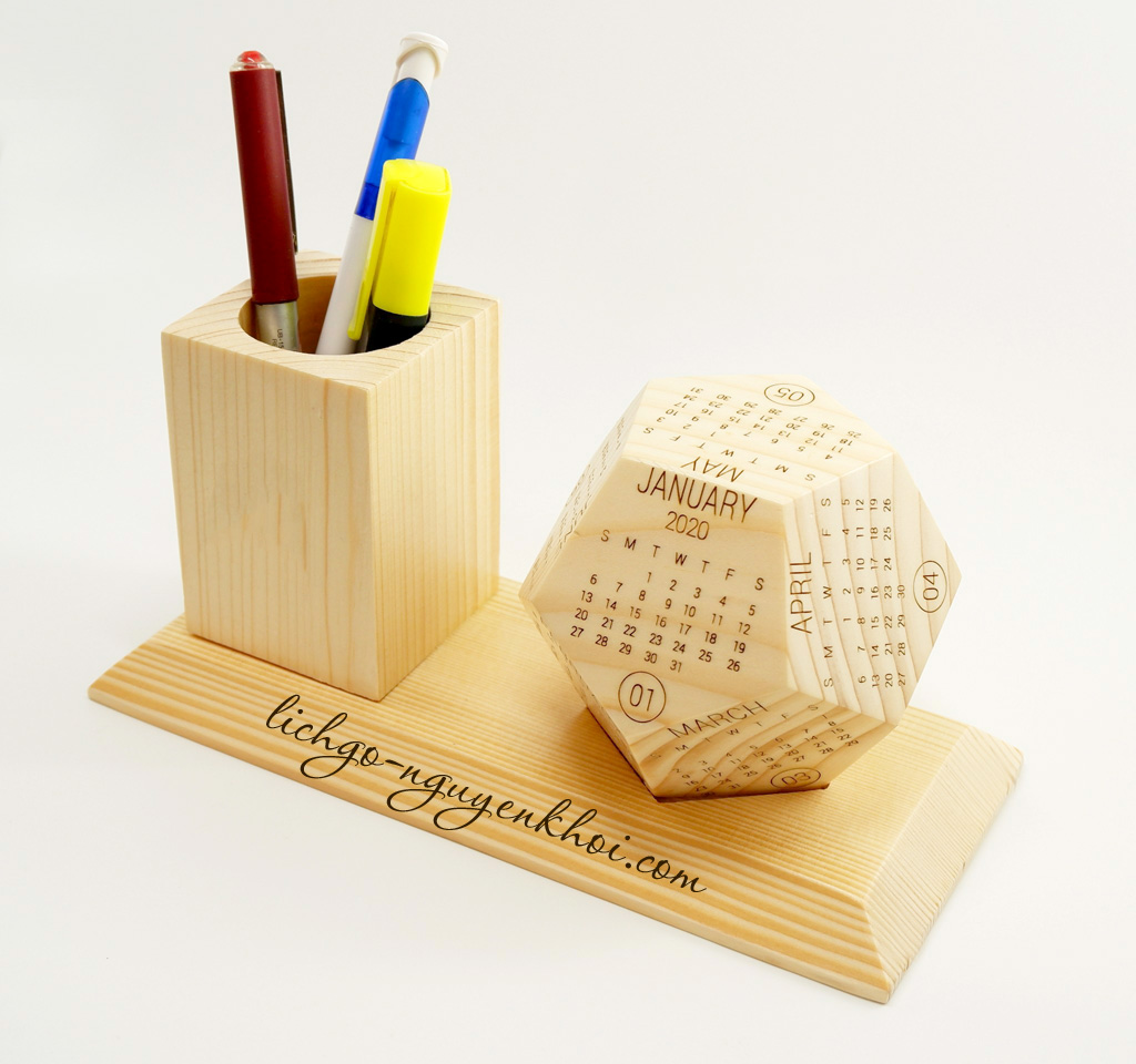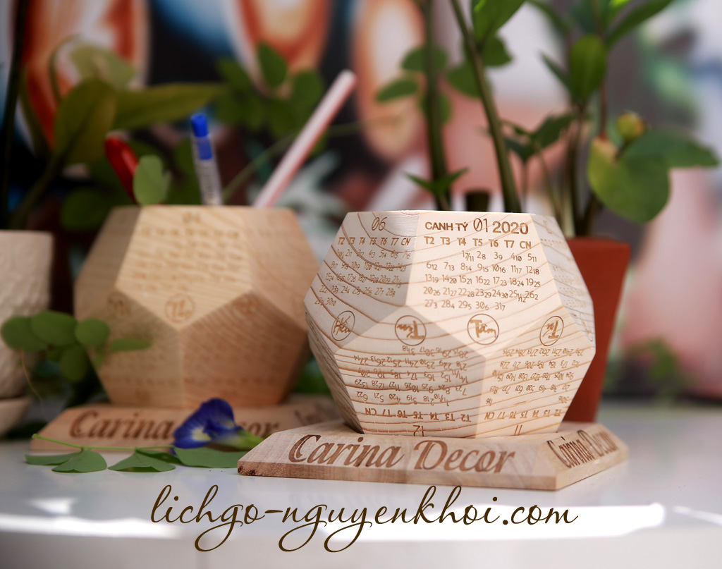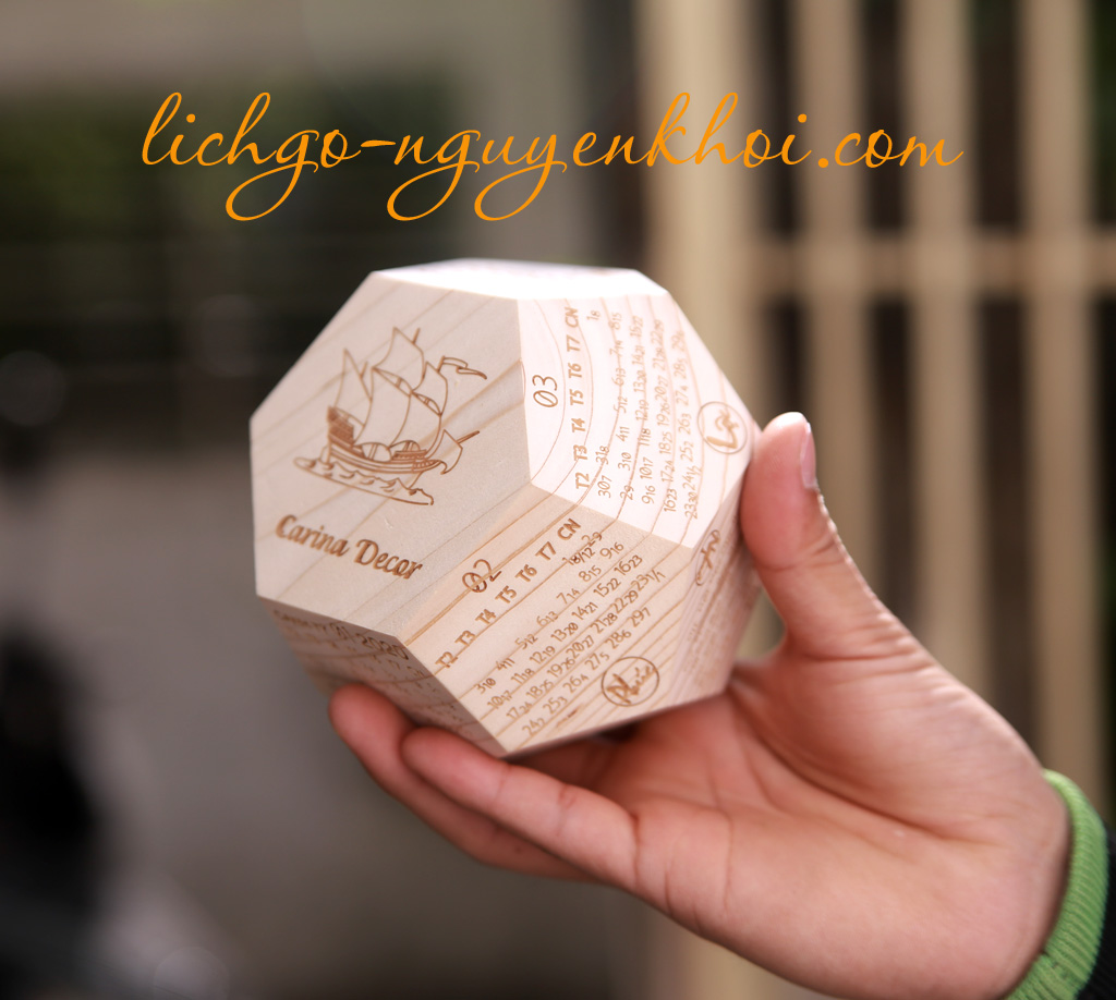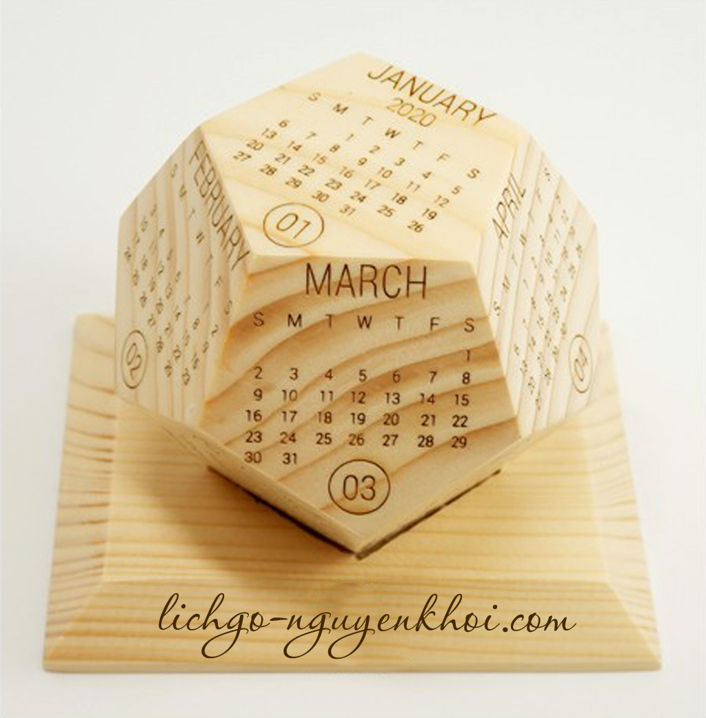 Lịch gỗ nguyên khối, lịch nguyên khối 2025 lịch gỗ 12 mặt ngũ giác